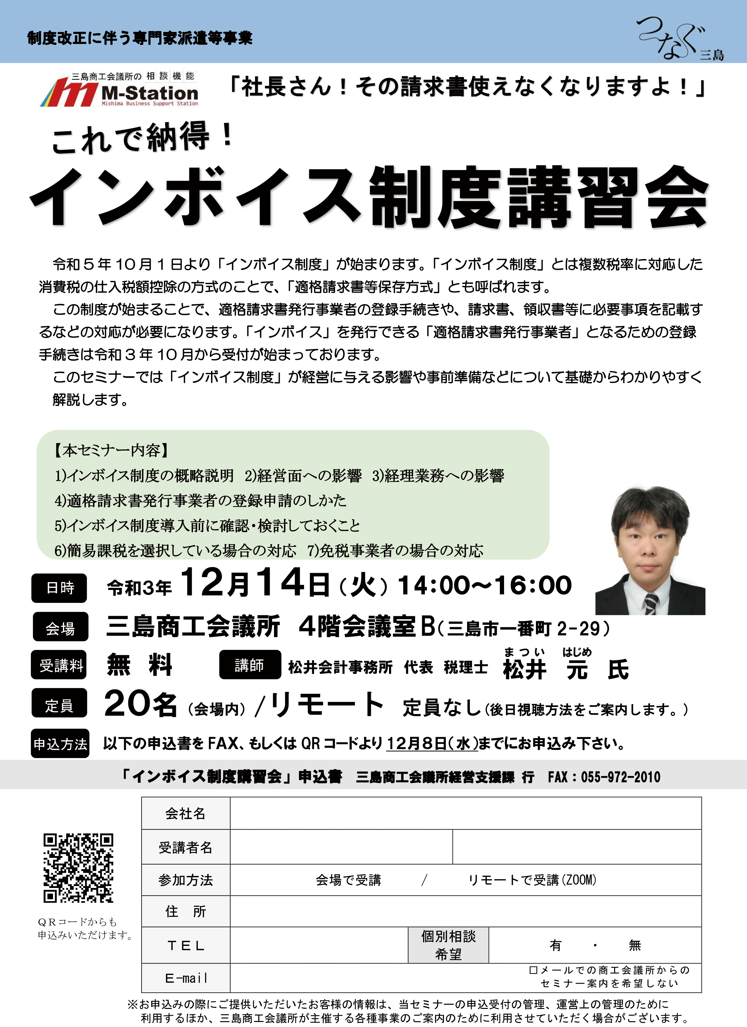 インボイス制度講習会を開催します