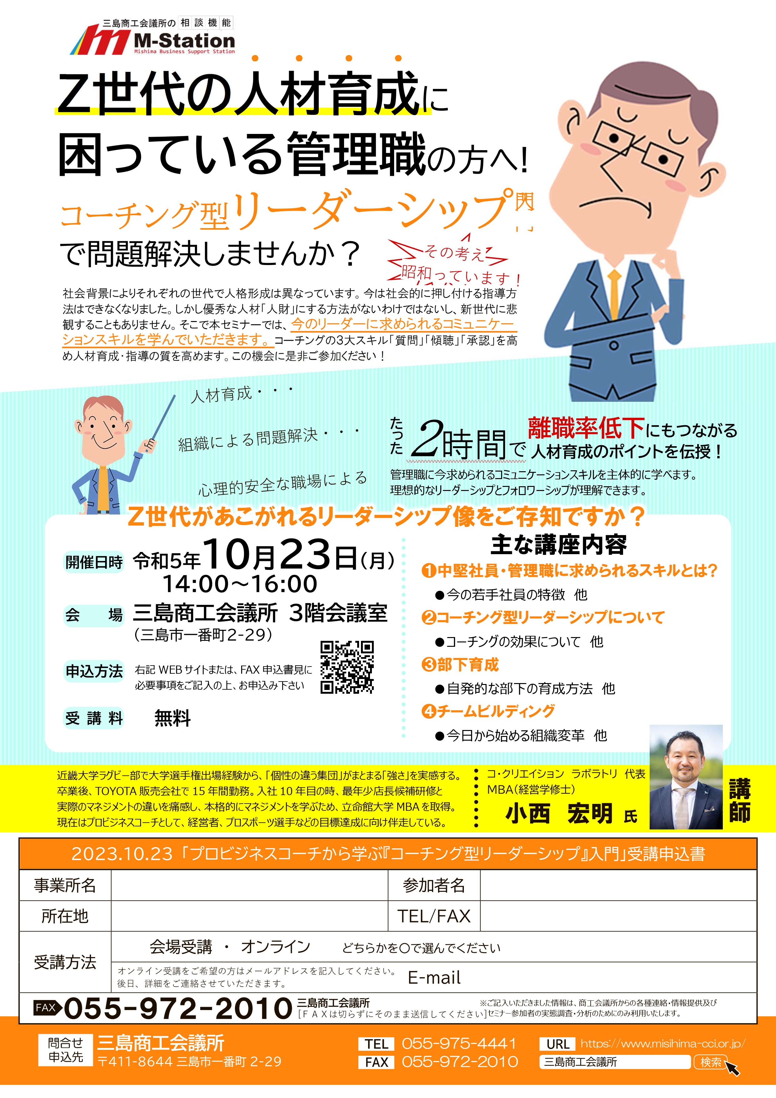 プロビジネスコーチから学ぶ『コーチング型リーダーシップ』入門セミナーを開催します!