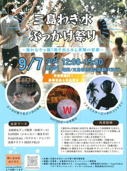 ー川床イベントー 9/7(日)『三島わき水ぶっかけ祭り』を開催します!2025年09月02日