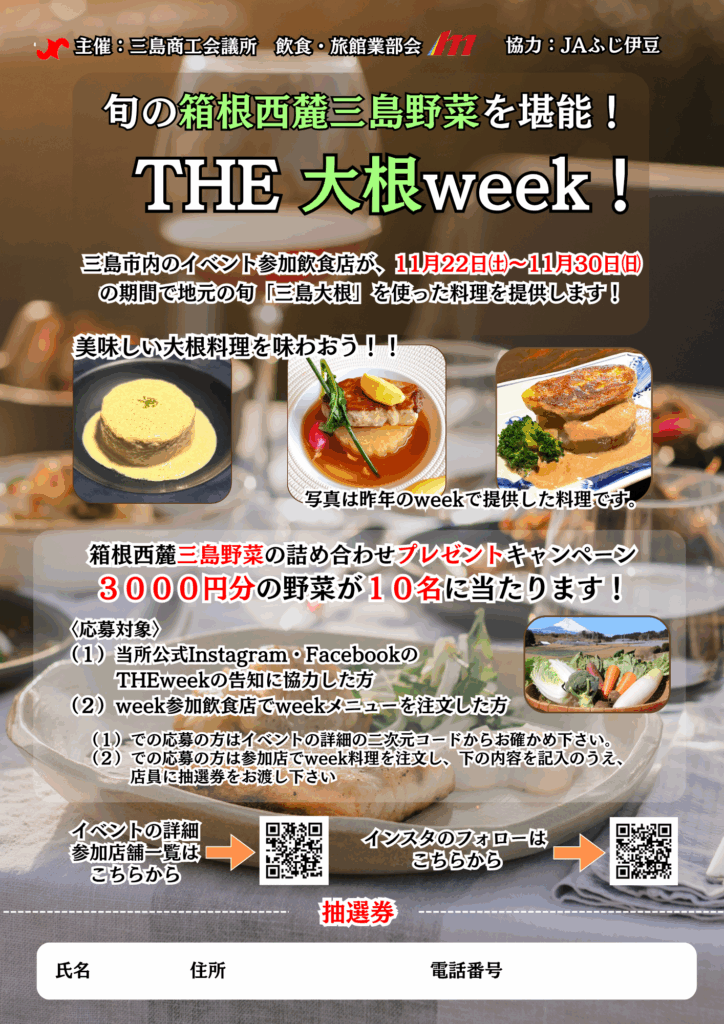 三島商工会議所 > 新着情報 > 旬の箱根西麓三島野菜を堪能!「THE大根week」開催します!
