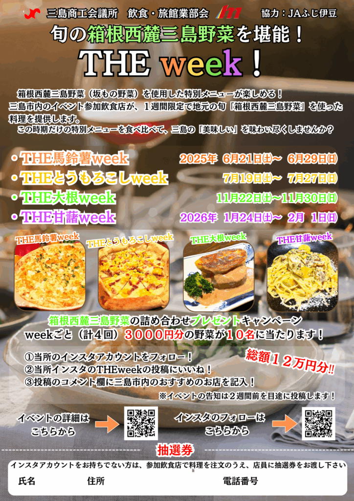旬の箱根西麓三島野菜を堪能!「THE甘藷week」開催します!